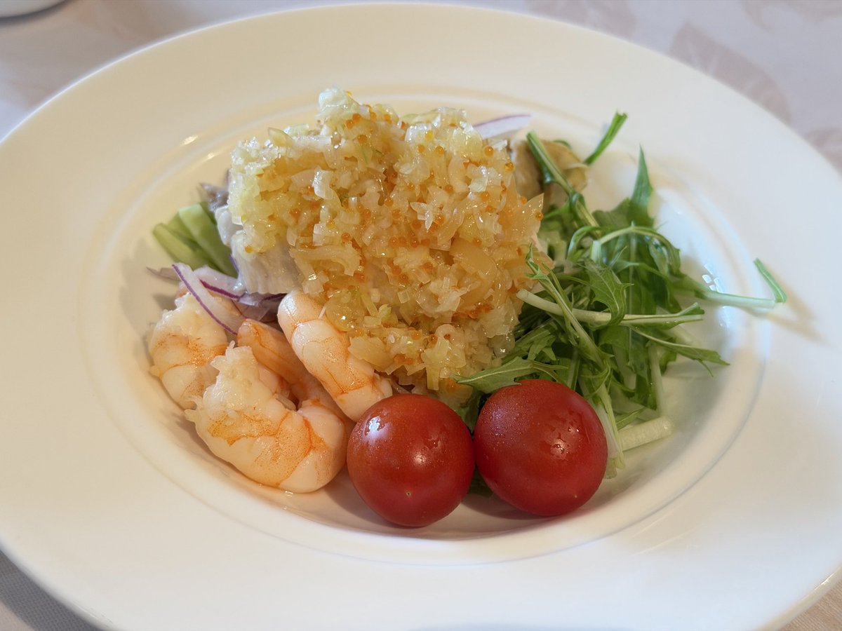 冷製 海鮮と鶏肉のサラダ 葱ソース